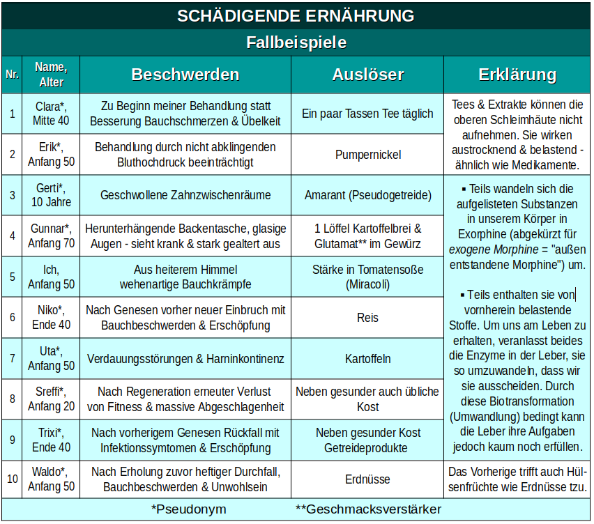 An Hand der nun folgenden 10 Fälle möchte ich Ihnen verdeutlichen, wie schädlich sich mitunter scheinbar geringe Abweichungen von gesunder Kost auswirken können: