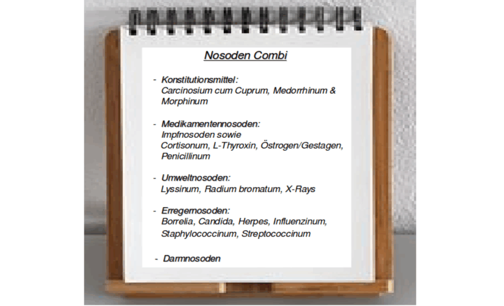Die Anwendung und Zusammenstellung von Nosoden sowie weitere Maßnahmen, die wir für unser Genesen benötigen, habe ich in meinen Büchern, die Sie per Mail oder Telefon (06438/ 923 004 oder 0160/ 44 555 97) bestellen können, ausführlich beschrieben. Darin finden Sie zum ersten Mal ein Verordnungskonzept, das die Chance bietet, die jeweils individuell benötigten Therapie-Bausteine zu kombinieren.